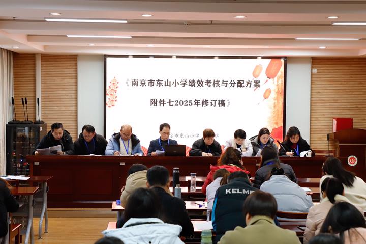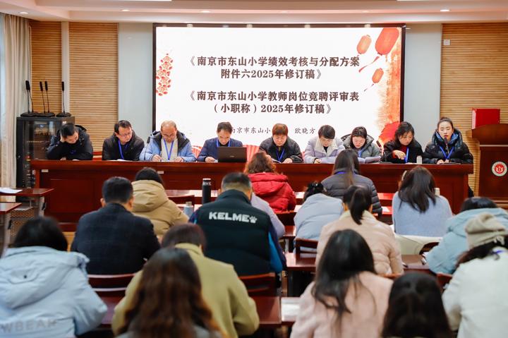 会上,相关部门依次解读了《南京市东山小学绩效考核与分配方案附件一、二、五、六、七、九(2025年修订稿)》《南京市东山小学聘用教师考核方案附件一(2025年修订稿》《南京市东山小学教师岗位竞聘评审表(小职称)2025年修订稿》《南京市东山小学年度考核优秀评选条件》四项方案。代表们分组深入研讨,积极建言献策,主席团汇总意见后对方案优化调整并现场说明,最终两项报告、四项方案均获全票通过。