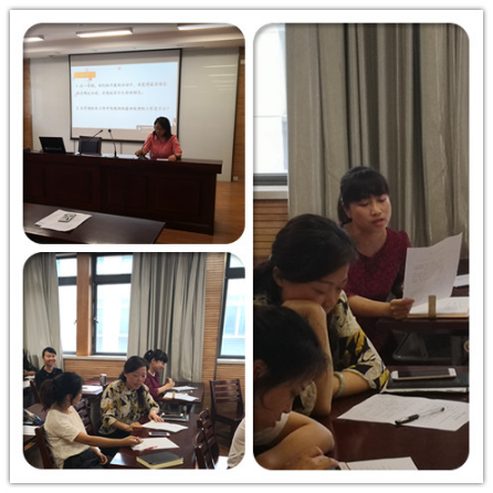 会议开始,教务处郭主任和欧老师提出,本次活动的主要目的是总结本学期两组工作,同时,也是大家聚在一起交流经验、分享成果的时刻。接下来,各组组长依次围绕这两个问题展开讨论,介绍本组特色、经验时也毫无保留。例如美术组张虹老师重点介绍了版画活动,本学期美术组开展的市级版画主题活动受到来自各地的美术老师的赞赏,张老师从准备、分工、展示的各个方面介绍了成功的经验,在座的各位组长也获得很多启发。