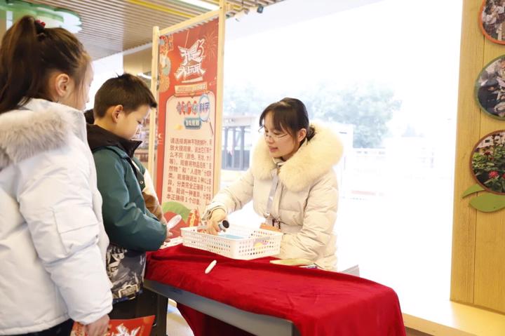最后一关,开启趣味文化寻宝之旅!孩子们随机抽取题卡,化身小小寻宝家,在缤纷图片中仔细辨认传统元素。“这是舞龙!”“是过年吃的饺子!”“快看,京剧脸谱!”每认出一个元素,孩子们的眼睛就亮上一分,惊喜的喊声接连不断。春节的喜庆、端午的韵味、戏曲的魅力……中华优秀传统文化的种子,在趣味探寻中悄然播撒在孩子们的心田,生根发芽,静待花开。