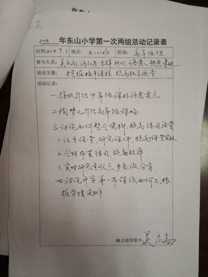 新的学期我们全体六年级英语教师聚在一起,进行了本学期第一次活动。首先我们集体学习了英语课标对高年级的要求,课标中只对语言技能进行了描述。接着,我组对即将进行的开学第一课进行了深刻的研讨。经过充分讨论,准备先对之前的知识进行复习和整理,然后再进行新课的教授,并确定了新课的导入,重要环节的研磨和拓展部分的延伸,旨在上出第一课的精彩。