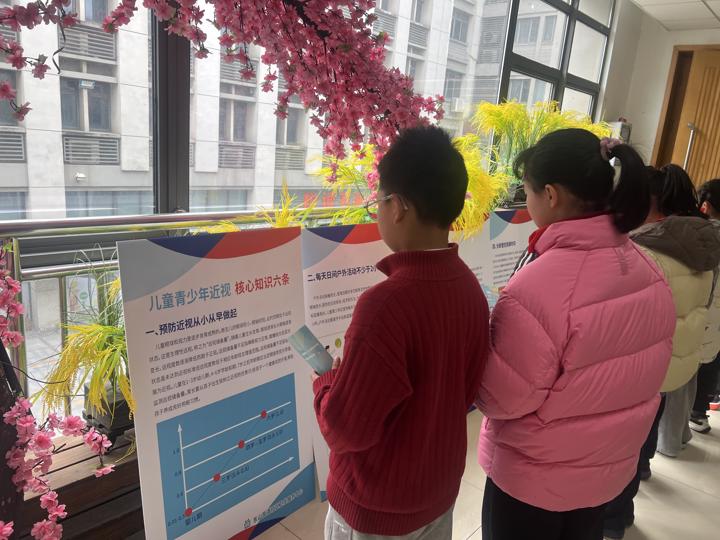 活动现场,学校设置了多块近视防控主题宣传展板,以图文并茂的形式直观呈现护眼知识,同时为学生发放宣传册,将科学用眼、预防近视的实用技巧延伸至课外。