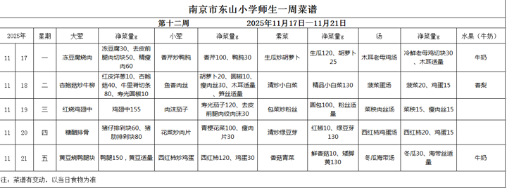 师生第12周菜谱