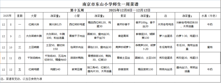 师生第15周菜谱