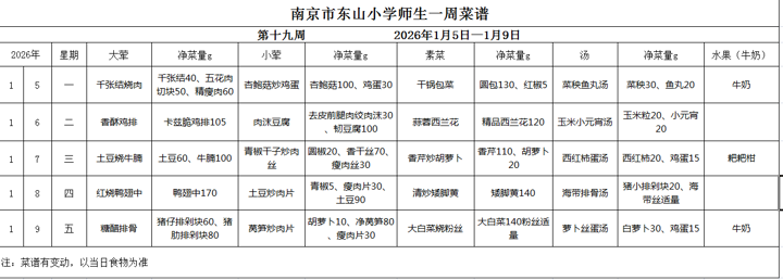 师生第19周菜谱