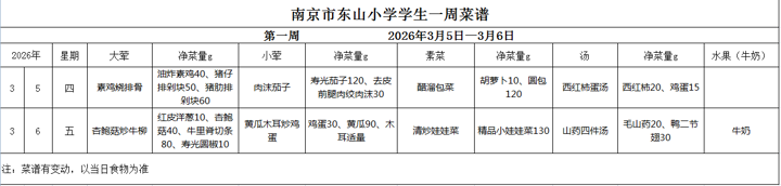 学生第1周菜谱