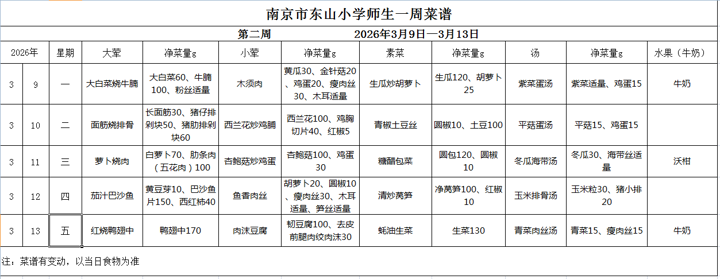 师生第2周菜谱
