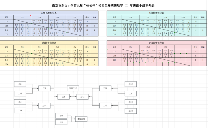第九届“校长杯”校园足球班级联赛二年级组小组赛积分榜