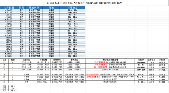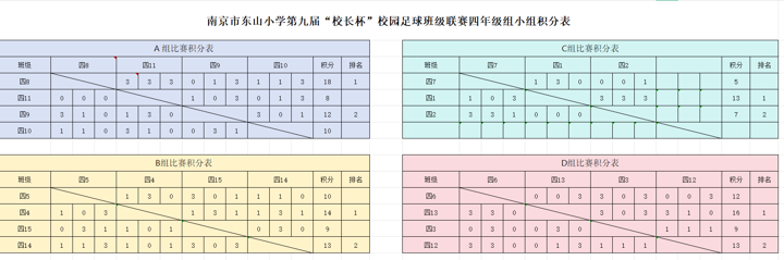 南京市东山小学第九届“校长杯”校园足球班级联赛四年级赛果及冠亚季军合影