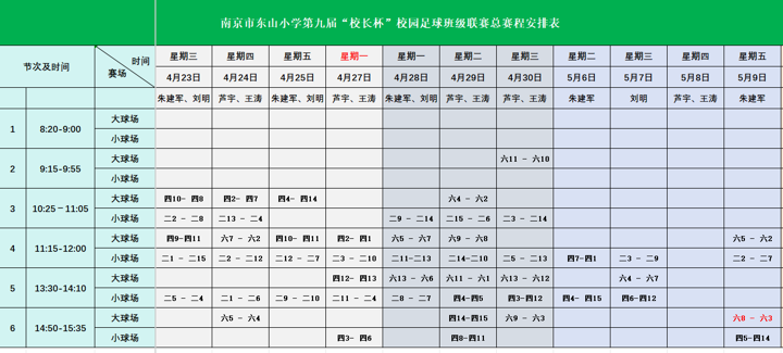 南京市东山小学第九届“校长杯”校园足球班级联赛总赛程安排表